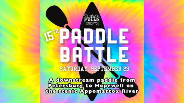 Welcoming paddlers of ALL levels to the 15th PADDLE-or-BATTLE on the scenic Appomattox River!  This section of river is flatwater and tidal, and this year we’re paddling DOWNSTREAM winding through beautiful marshy areas with lots of wildlife. Paddlers have a choice of a 10-Mile Leisure Paddle, 2-Mile Shorty Paddle, or a 10-Mile Race (the battle!).…
