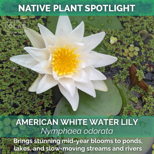 July's Native Plant Spotlight is the American White Water Lily! This plant has several common name variations, such as Fragrant White Water Lily, even though this plant’s flower can be pink. Its underwater tuber roots receive oxygen and other gases through spongey channels in the stems of the leaves floating on the surface. Those tubers are also a favorite snack of many of our water mammals, like beavers and muskrats. The flower blooms for about three days a year per plant. We've seen them blooming in early July along the Appomattox River Trail. The blooms close at night and open on bright sunny days, and after they are pollinated, the flowers develop seeds that are eaten by waterfowl.